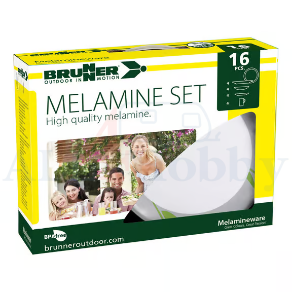 16-częściowy komplet naczyń wykonany z wysokiej jakości melaminy. Ponadczasowo piękny design.